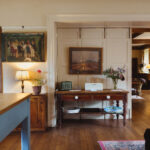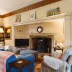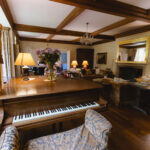 • Very large drawing room (40′ x 24′) with open fire and grand piano